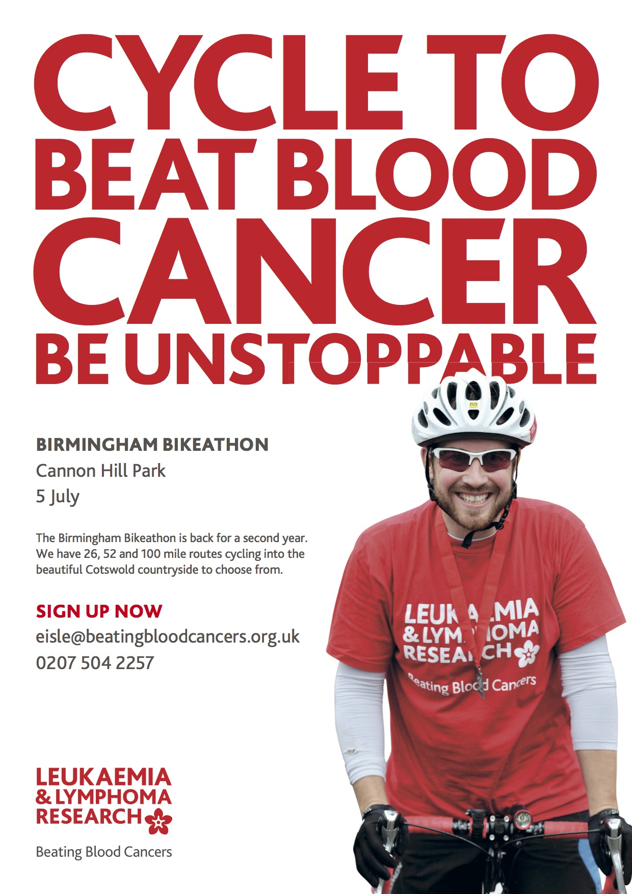 Organised by Leukaemia & Lymphoma Research, in conjunction with the CTC, British Cycling and Birmingham City Council.