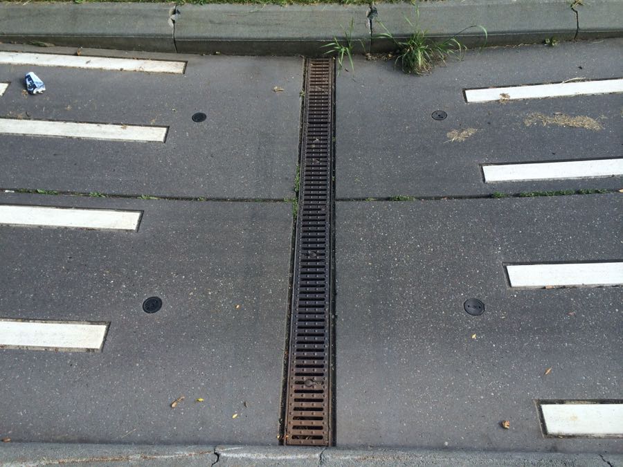 Detail of a speed ramps on a Dutch cycle route, showing the drainage.
