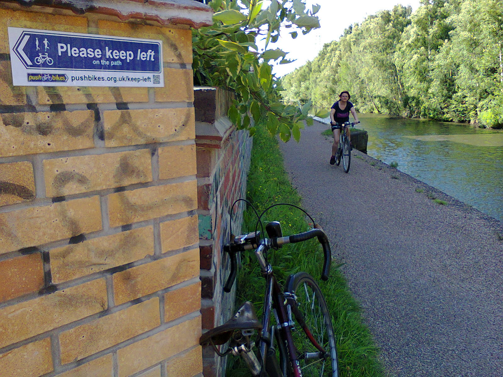 The signs link to an explanation page, http://www.pushbikes.org.uk/blog/please-keep-left-people